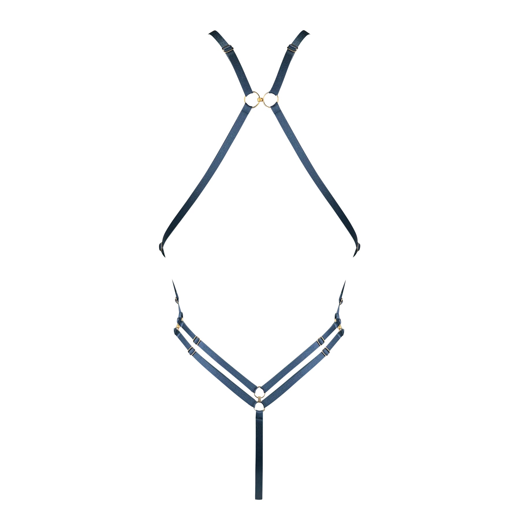 An entirely elastic lingerie harness featuring delicate signature satin elastic strapping. A refined take on bondage-inspired styling, the harness is designed for layering. Beautiful when paired with the Shell Nipplets, or daring when worn alone.