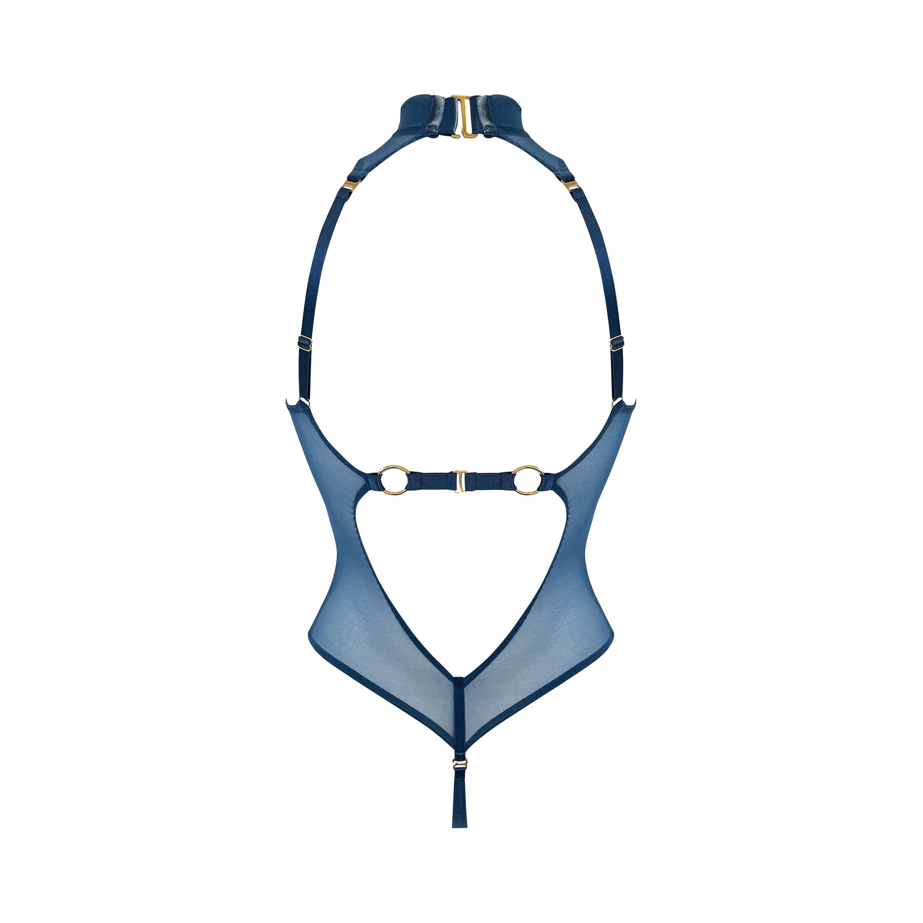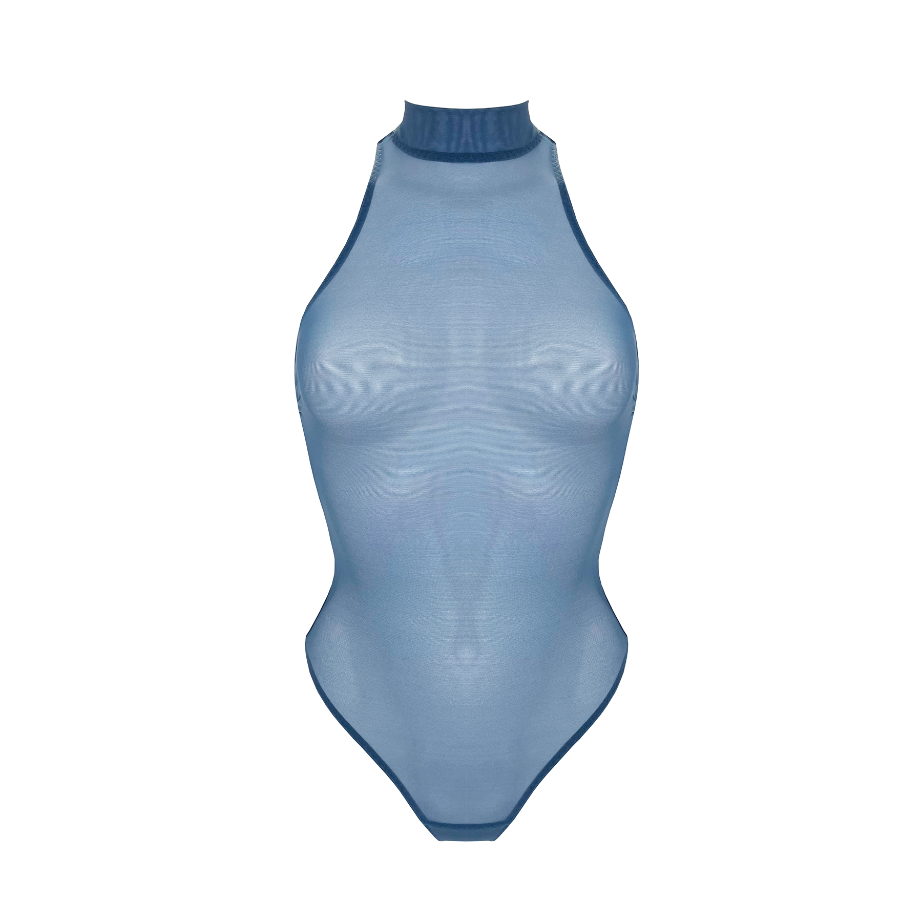 A soft sheer mesh bodysuit creating a classic, elegant silhouette. Sheer, sexy and comfortable, the soft mesh contours the figure while three 24k gold plated swan hook fastenings secure the neck, back and thong strap. A seasonal addition of the iconic Signature style.