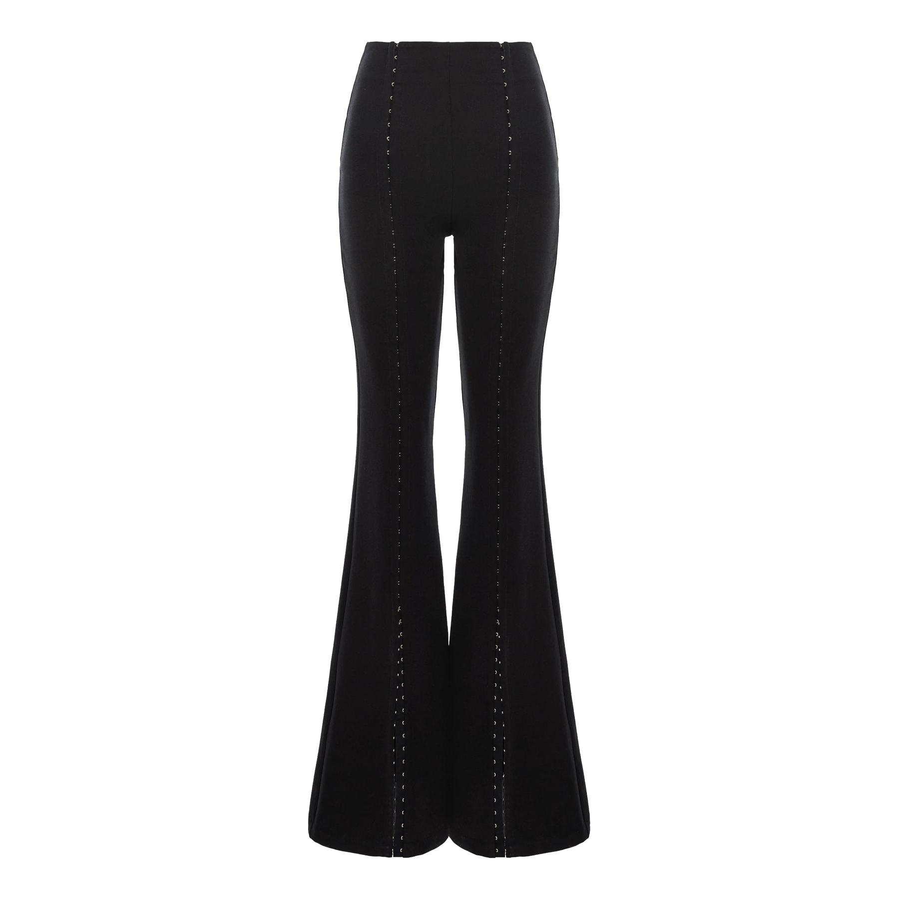 The versatile black Snap Trousers are perfect for year-round wear, thanks to the convenient hooks and eyes running down the legs, which also act as slits. For a sleek and seamless look, the trousers feature an invisible zipper fastening at the center back. Step up the style game by pairing them with some stylish boots.